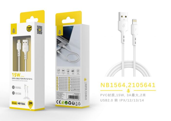 NB1564 BL 15W/3A Cable de datos fonti para Iphone 5-14, 2M, Blanco