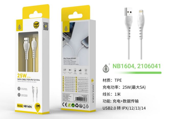NB1604 BL Cable de Datos Limi para Iphone 5-14, Carga rapida 25W/5A,Cable 1M, Blanco