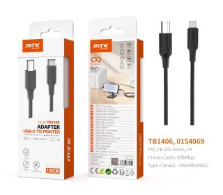 TB1406 NE Cable de Impresora Tipo-C a USB 2.0, velocidad transferencia 480Mbps, Cable 1M, Negro