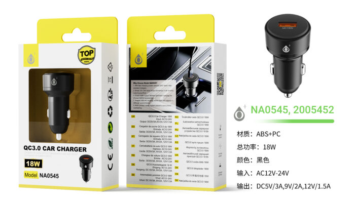 NA0545 NE 18W/QC 3.0 Cargador de Mechero con carga Rapida Amaltea sin cable, Negro