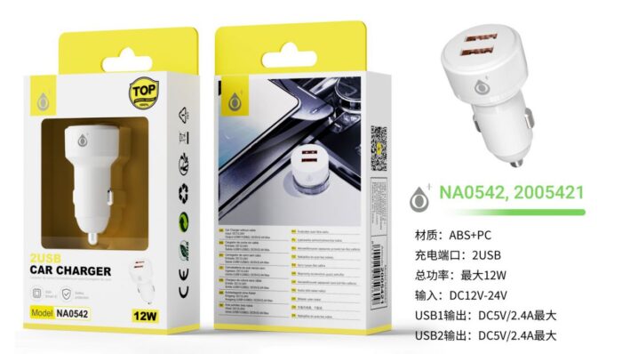 NA0542 BL Cargador de Mechero TAC 2 USB-A con IC chip, Sin cable, 12W/2.4A, Blnaco