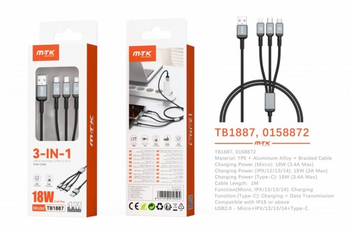 • TB1288 BL Cable de datos PVC Venus para Micro USB, 1M, 3A BLANCO