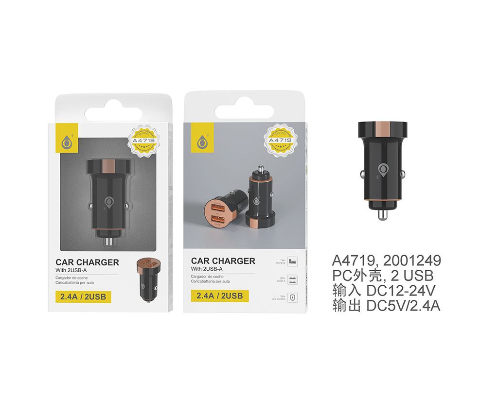A4719 NE+OR Cargador Mechero SURI sin cable , 2 USB , 2.4A, Negro + Oro