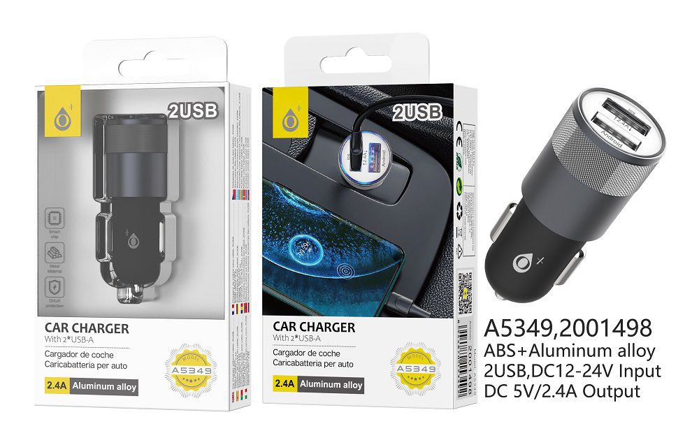 A5349 NE+GR  Cargador  Mechero Versus sin cable , 2USB,2.4A/5V,Negro+ Gris