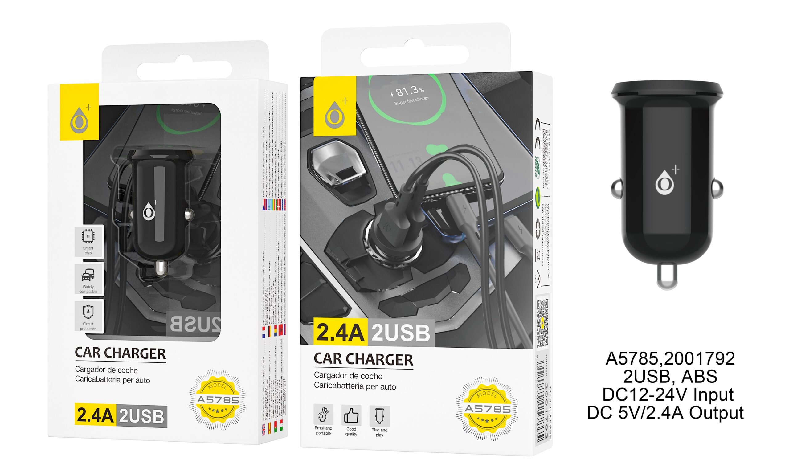 A5785 NE Cargador de Mechero Proteo sin cable , 2USB, 2.4A, Negro