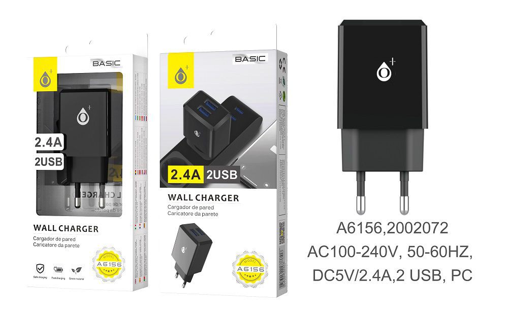 A6156 NE Cargador de Red S.BasicTebe 2 USB sin cable, 2.4A,Negro