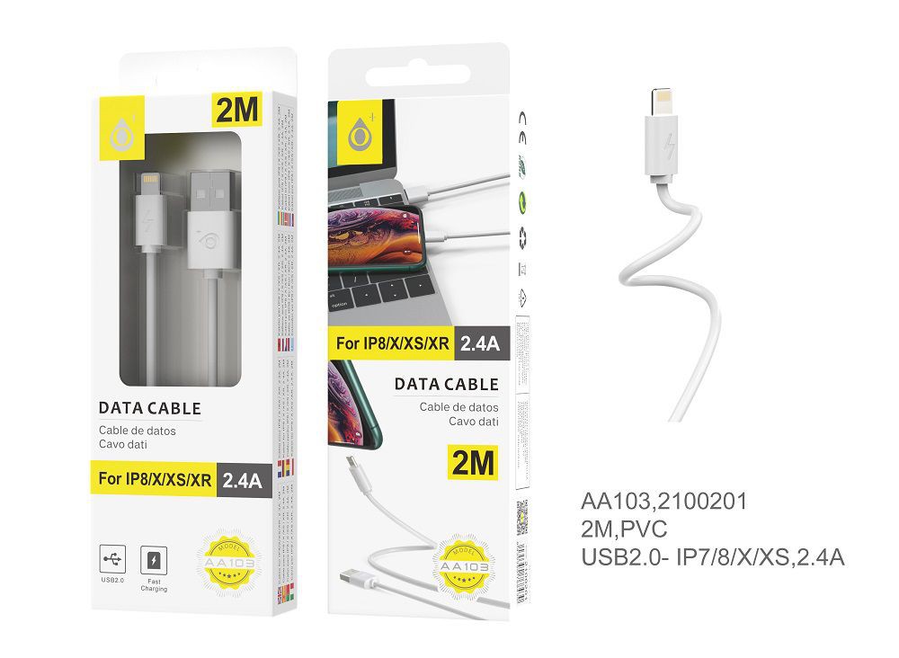 AA103 BL Cable de Datos para Iphone 5/6/7, 2A 2M, Blanco