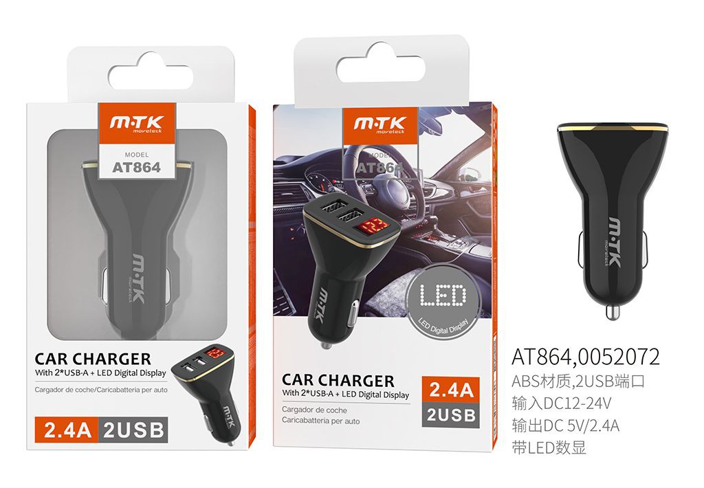 AT864 NE Cargador de Mechero Quila con pantalla Indicador de LED, 2 USB , 2.4A Max, Negro