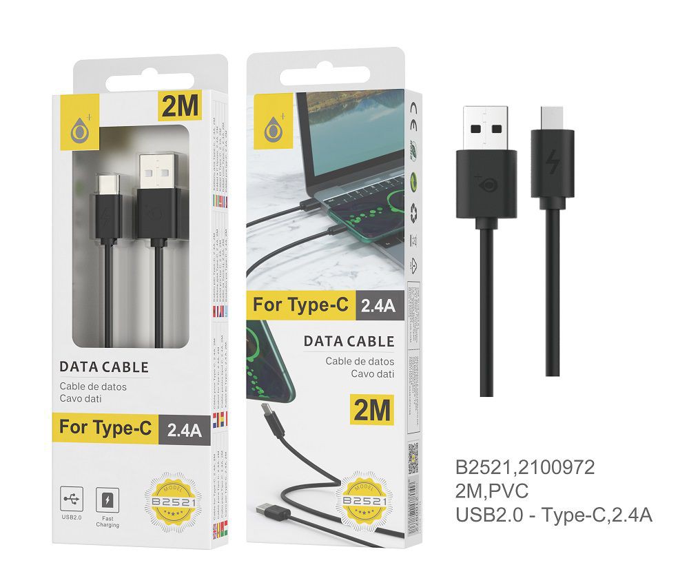B2521 NE Cable de Datos para Type C, 2.4A 2M, Negro