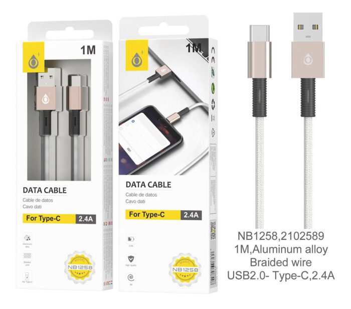 • NB1258 PL Cable de Datos trenzado Thor para Type C, 1M 2.4A, Plata