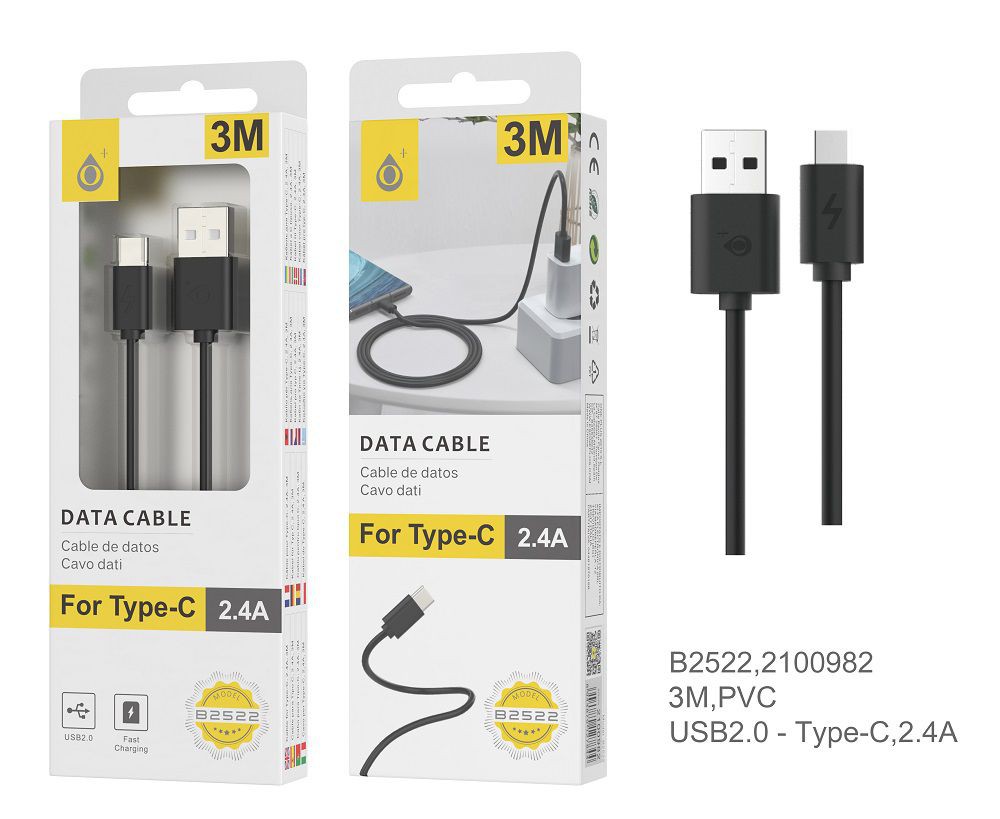 B2522 NE Cable de Datos para Type C, 2A 3M, Negro