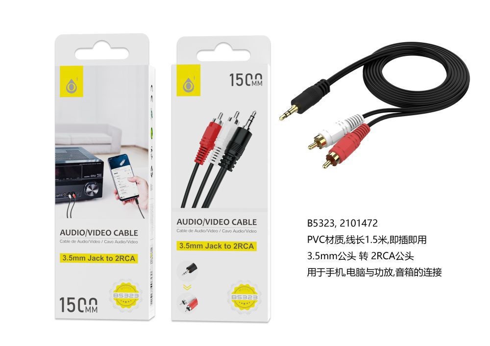 B5323 NE Cable de audio 3.5mm to 2 RCA , 1.5M, Negro