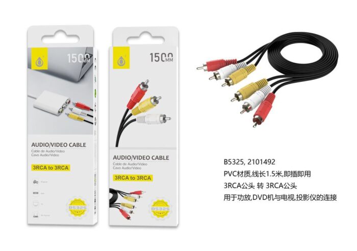 B5325 NE Cable de audio 3 RCA to 3 RCA , 1.5 M, Negro