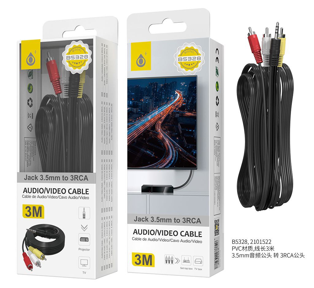 B5328 NE Cable Audio 3.5M a 3RCA 3M , Negro