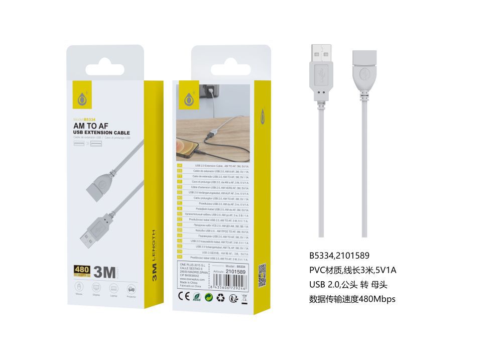 • B5334 NE Cable de extension USB2.0 AM A AF , 3.0M,Negro