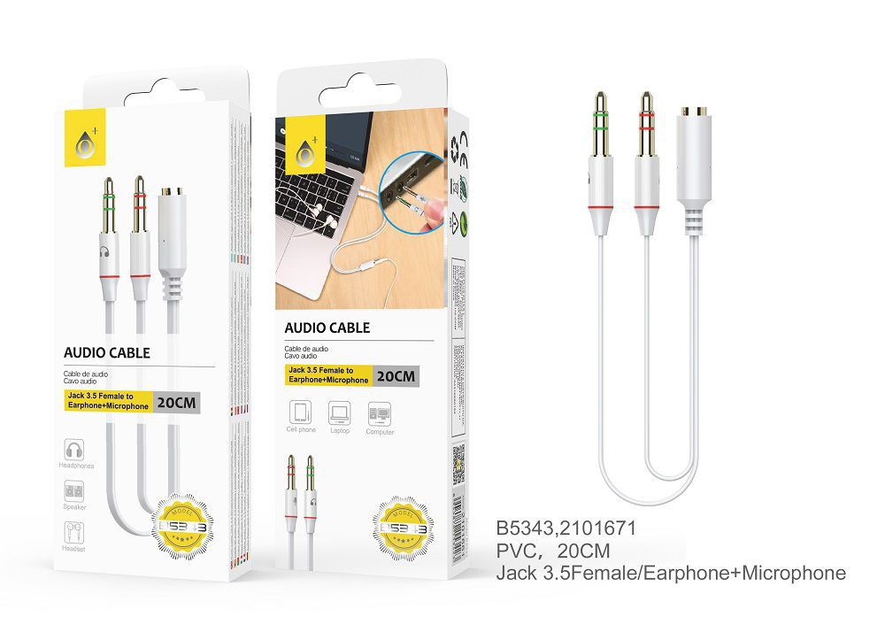 B5343 BL Cable de Audio 2 jack  3.5mm a 1 jack hembra , Blanco