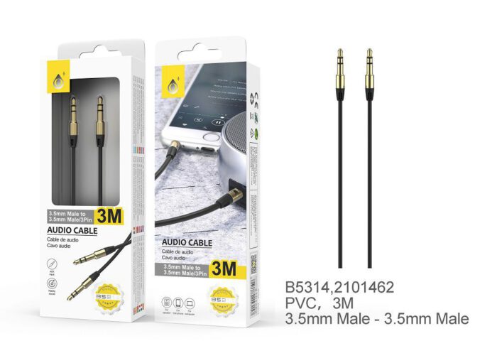 • B5314 NE Cable Audio Plank M/M 3.5mm, conector metalico, 3 M , Negro
