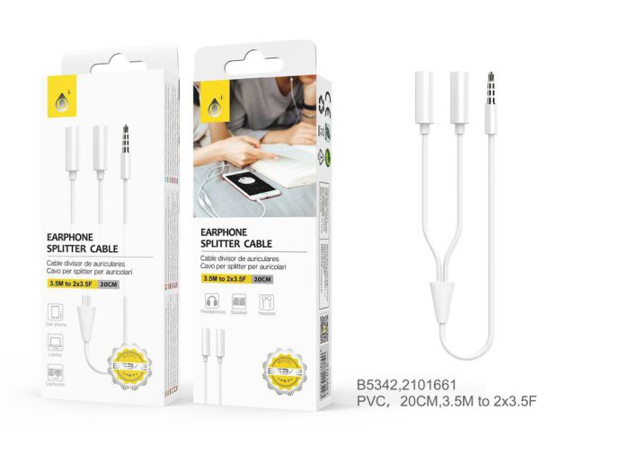• B5343 BL Cable de Audio 2 jack 3.5mm a 1 jack hembra , Blanco