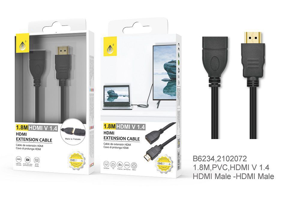 B6234 NE Cable de extension HDMI V1.4, 1080P, M a F, Longitud 1.8M , Negro