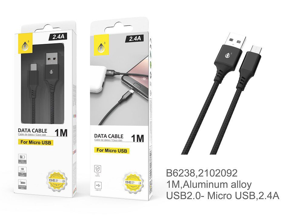 B6238 NE Cable de datos Aluminio S.Basic Giova para Micro USB, 2.4A, 1M , Negro