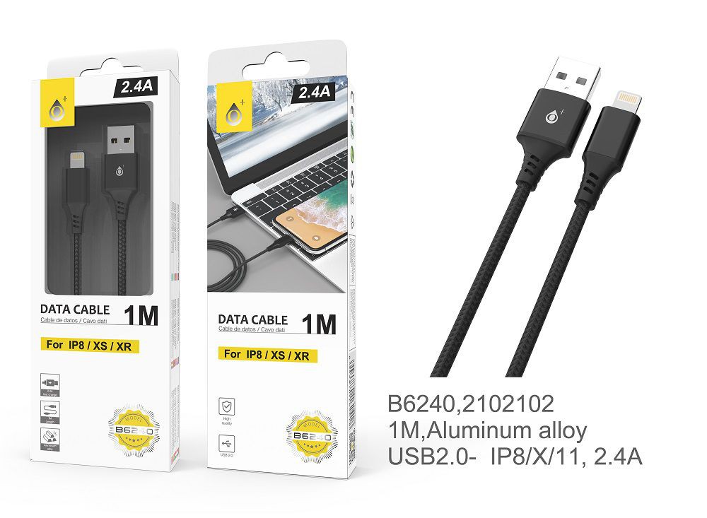 B6240 NE  Cable de datos Aluminio S.Basic Giova para IP6/7/8/X, 2.4A, 1M , Negro