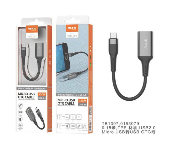 • TB1310 NE Cable OTG 2 En 1 TYPE C a Carga TYPE C +USB2.0 , 0,15M, Negro
