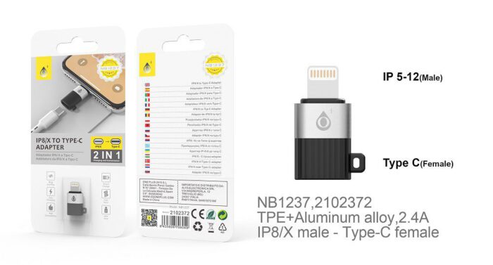 • NE NB1237 Adaptador TYPE C a Iphone 5-12 ,Negro