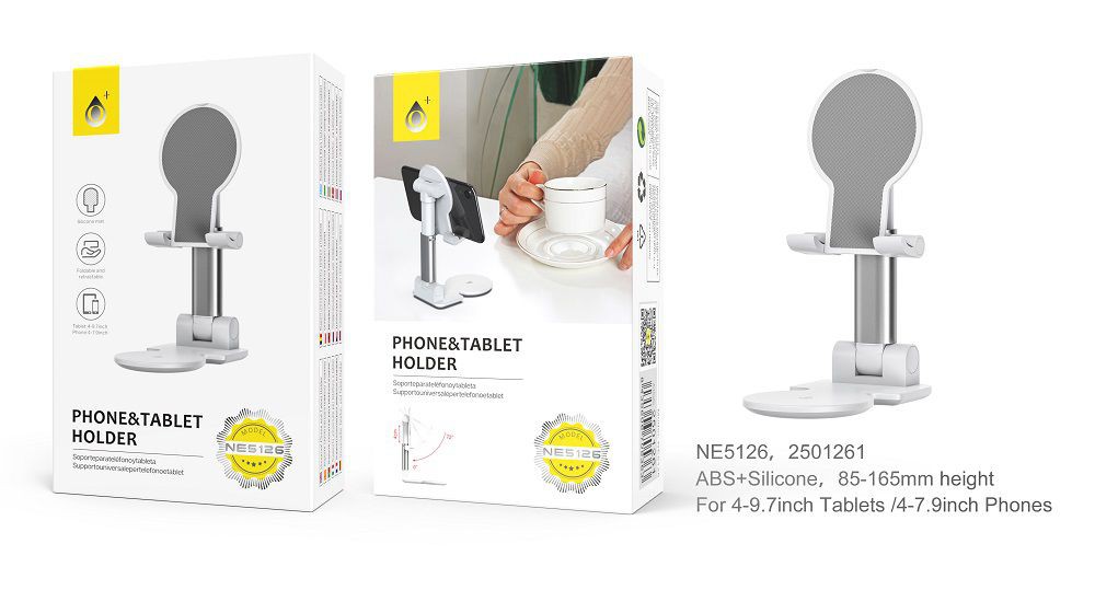 BL NE5126 Soporte De Movil y Tablet Mirror para Mesa, 4″ – 9,7″ Max, Plegable y Ajustable En Altura, Material Plastico, Blanco