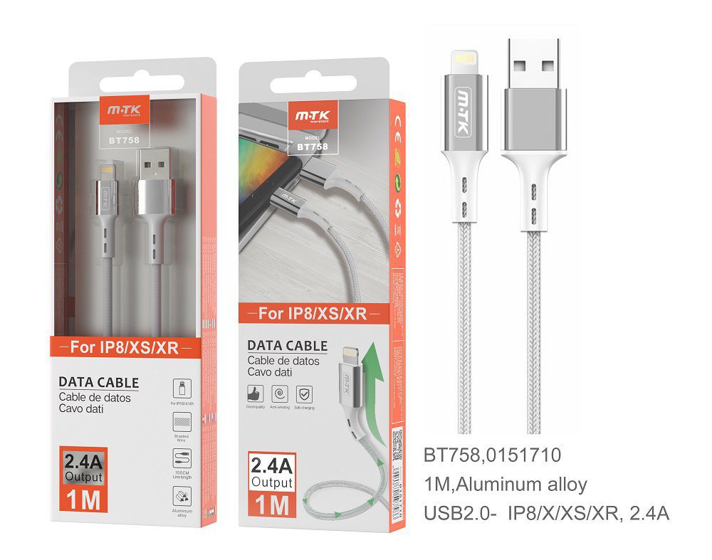 BT758 PL  Cable de Datos  Aluminio Flat para IP 5/6/7/8X , 2A  1M , Plata