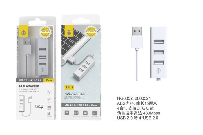 • NB1451 GR Cable de Hub Type-C OTG Multifuncion 4 en 1 , USB 2.0*3 +USB 3.0, Gris