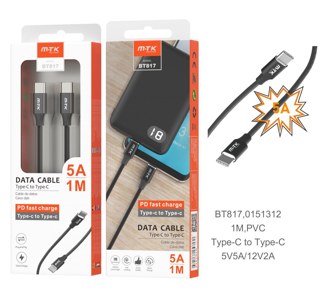 BT817 NG CableType-C a Type-C, Alta velocidad/Soporte PD, Negro