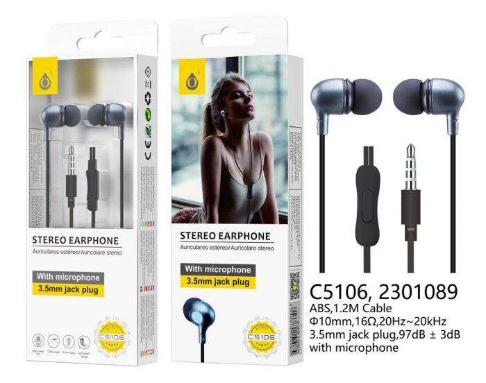 C5106 GR Auriculares con Microfono Apolo, 1,2M,Gris