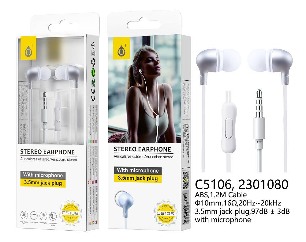 C5106 PL Auriculares con Microfono Apolo, 1.2M,Plata