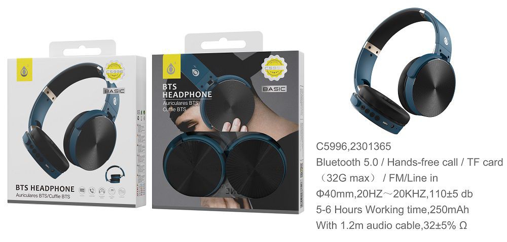 C5996 AZ Auriculares Casco S.Basic Bluetooth Pregable Lepux ,FM/TF/Audio,Azul