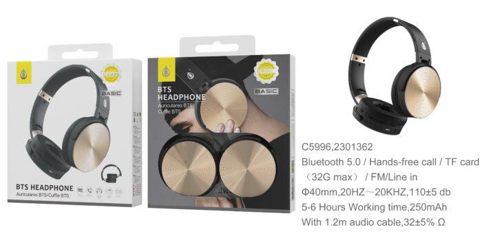 C5996 NE Auriculares Casco S.Basic Bluetooth Pregable Lepux ,FM/TF/Audio, Negro