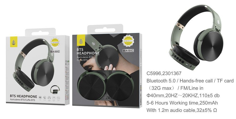 C5996 VE Auriculares Casco S.Basic Bluetooth Pregable Lepux ,FM/TF/Audio,Verde