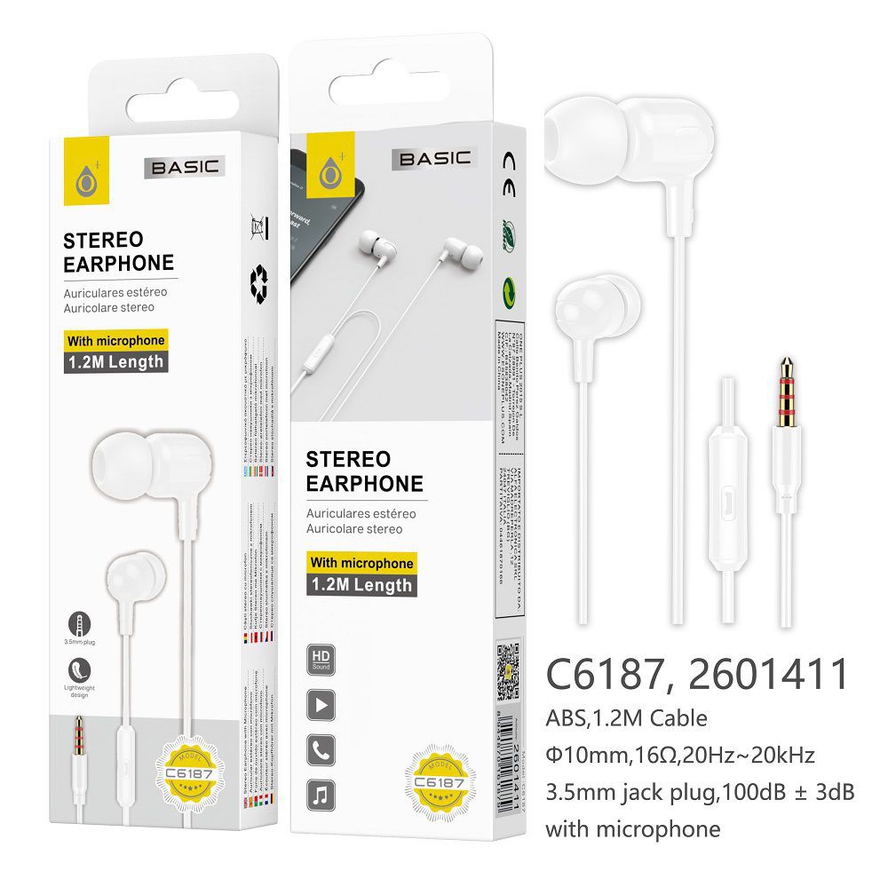 C6187 BL Auriculares con Microfono S.Basic Brione,con boton multifunciones, cable 1.2M , Blanco