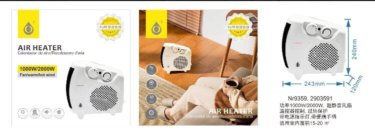 Calentador de Aire 1000W/2000W Proteccion Sobrecalentamiento NR9359