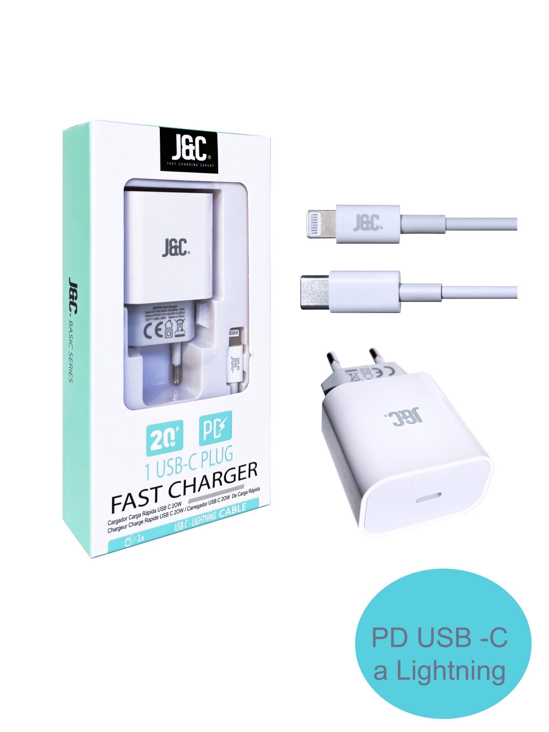 Cargador PD Carga rápida 1 USB-C 20W PD Cable USB -C a Lightning J&C C510 PD Blanco