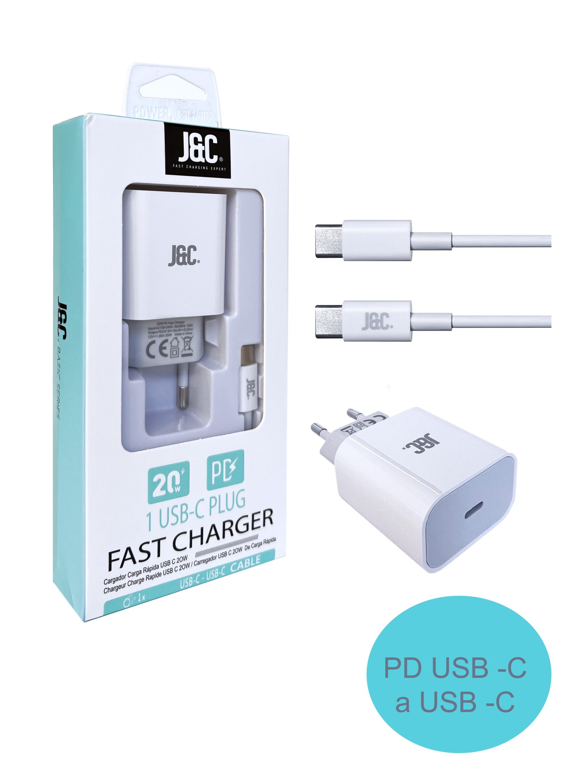 Cargador PD Carga rápida 1 USB-C 20W PD Cable USB -C a USB-C J&C C509 PD Blanco