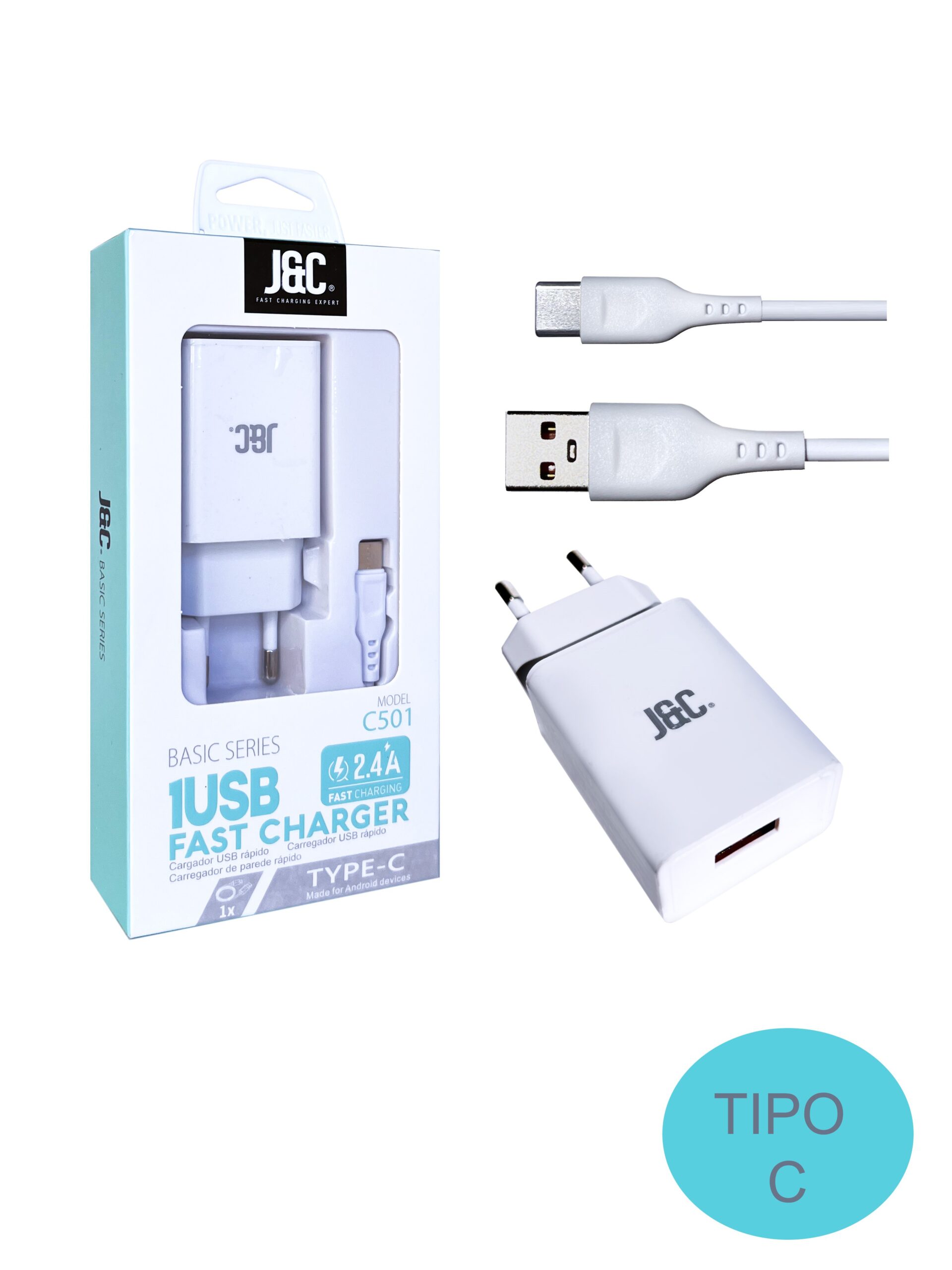 Cargador Tipo C Carga Rápida 1 USB 2,4A  Cable Tipo C J&C C501 TIPO C Blanco