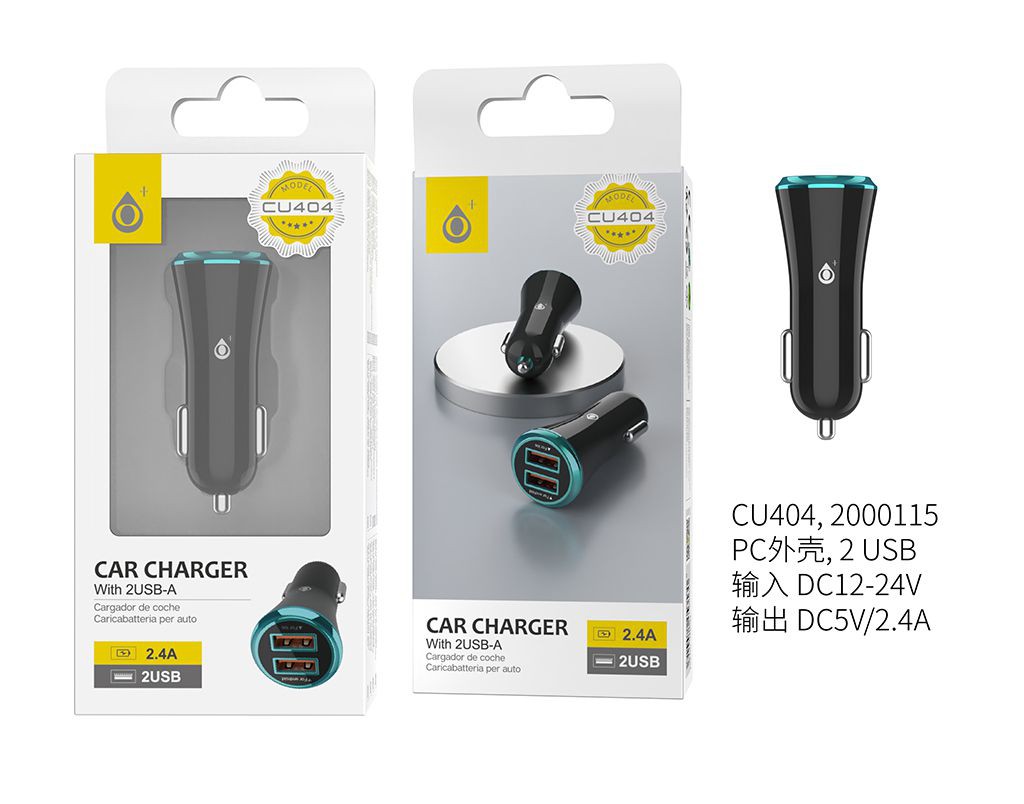 CU404 AZ Cargador Mechero Flaca 2USB 2,4A Negro con Anillo Azul