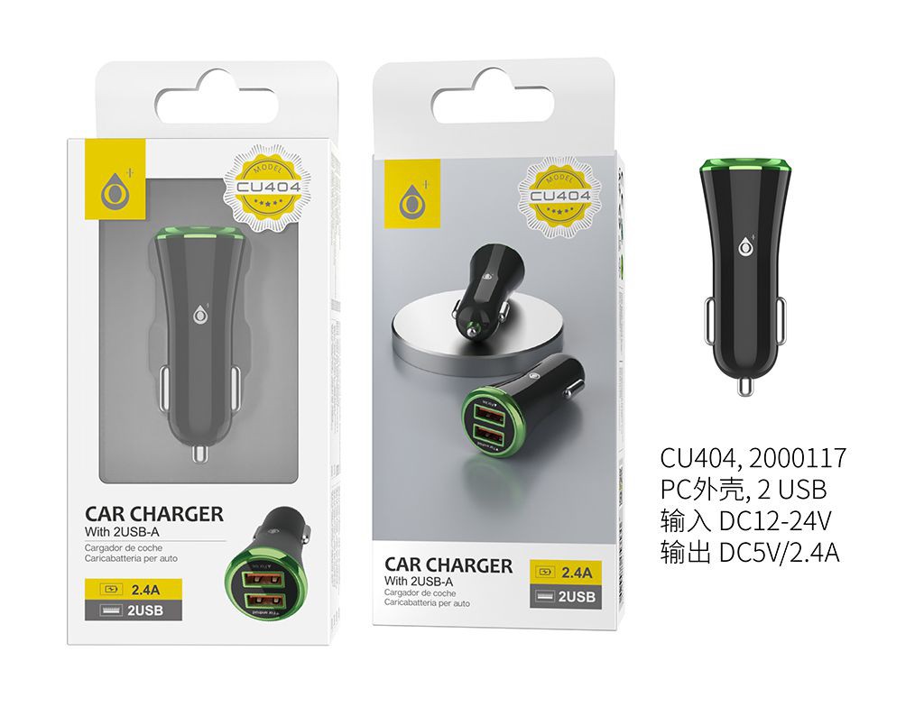 CU404-VE Cargador Mechero Flaca 2USB, 2,4A Negro con Anillo Verde