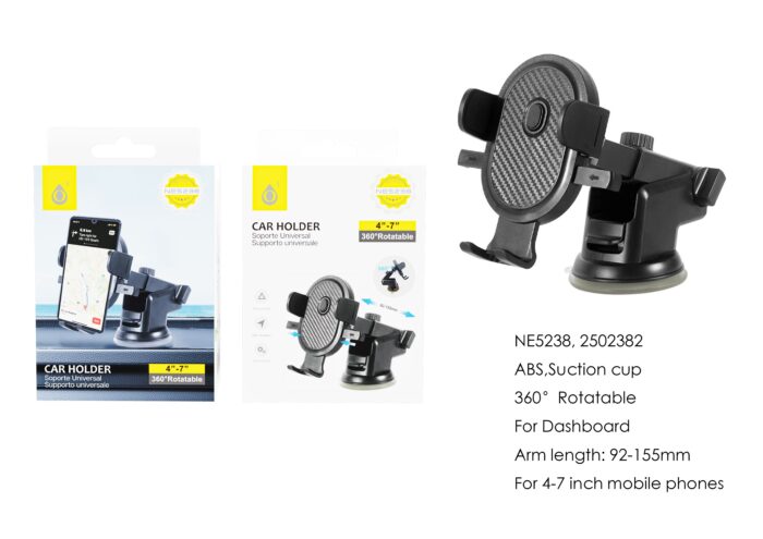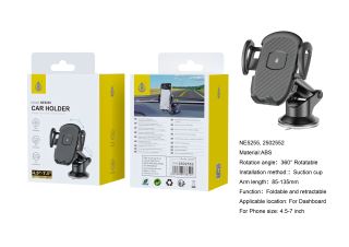 E5255 NE Soporte Universal de Movil para Salpicadero y Parabrisa, Blazo plegable 85-135mm, 360º Rotacion, Para Movil 4.5-7 Pulgadas, Negro
