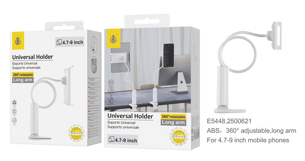 E5448 BL Soporte Universal de Móviles  y tablets con cuello y pinza, 4,7" - 9", Blanco