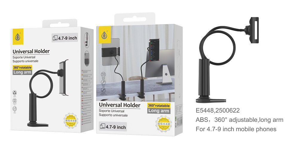 E5448 NE Soporte Universal de Móviles y tablets con cuello y pinza, 4,7″ – 9″, Negro
