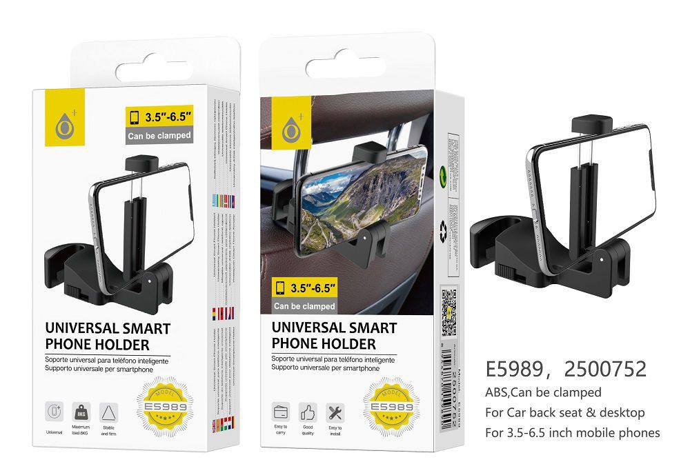 E5989 NE Soporte Universal de Movil para Reposacabezas del coche, Negro