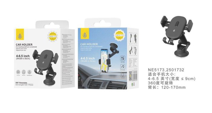 • NE5238 NE Soporte universal de movil para Salpicadero y Parabrisas , Brazo Extensible 92-155mm, 360° Giratoria ,Para Movil 4-7 Pulgadas, Negro