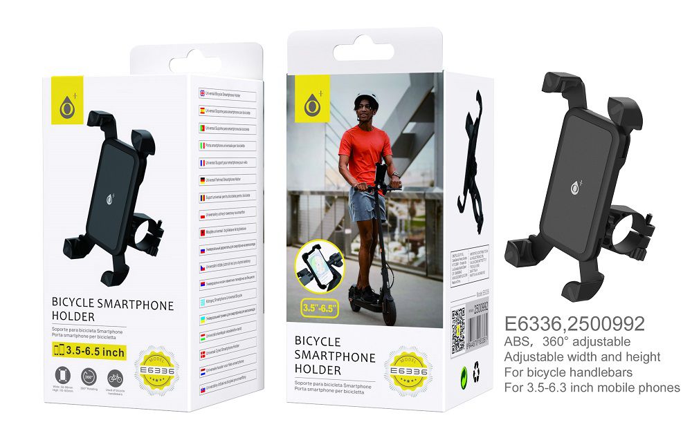E6336 NE Soporte Universal de movil para Bicibleta y Mi Scooter, 3,5-7'' , Negro