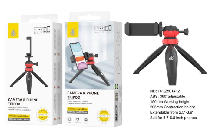 • NE5134 NE Tripode Aluminio para Moviles, Camaras y Videocamaras, 360 grados Extensible (48cm - 134.5cm), Negro